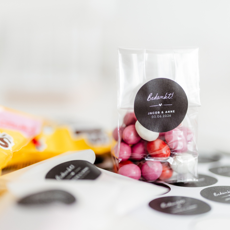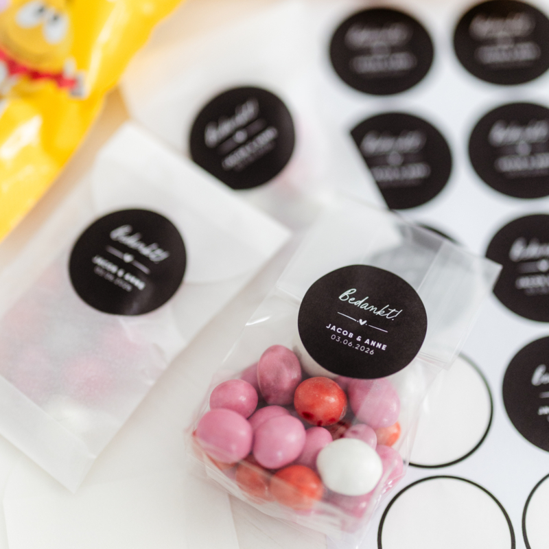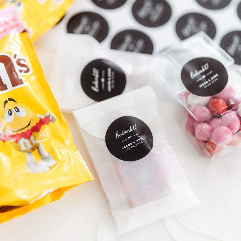 Hoe leuk is deze sticker voor op bedankjes voor jullie bruiloft! Wil je graag zo'n soort sticker in de stijl van je trouwkaart, stuur dan gerust even een berichtje!