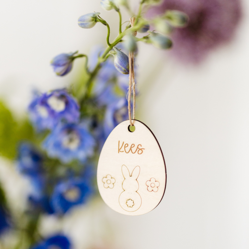 Maak jouw paasdecoratie extra bijzonder met deze gepersonaliseerde houten paashanger. Deze paashanger is speciaal ontworpen om bijvoorbeeld in een paastak te hangen en wordt gepersonaliseerd met een naam naar keuze. Hoe leuk voor…